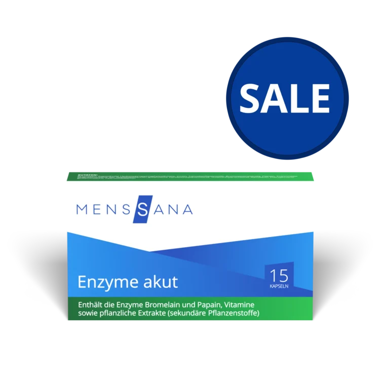 Unser Enzyme akut, die 5-Tages-Packung, versorgt dich optimal mit den pflanzlichen Enzymen Bromelain und Papain. Vitamin B6, B12, Folsäure für Immunsystem, B1 für Energie, B2 für Schleimhäute.